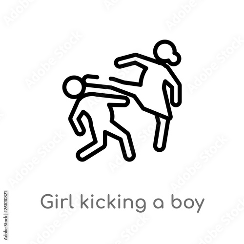 outline girl kicking a boy in the face vector icon. isolated black simple line element illustration from sports concept. editable vector stroke girl kicking a boy in the face icon on white