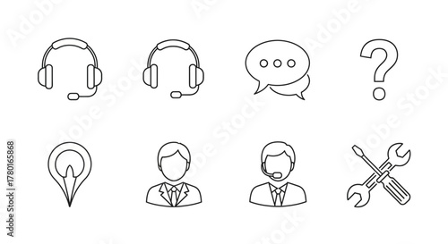 Outline Icons for Customer Support and Assistance, Helpline and Technical Support