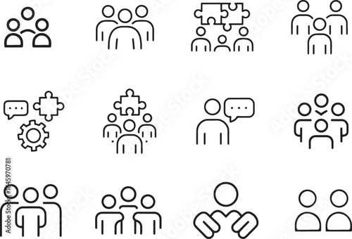 Outline Icons Representing Teamwork Collaboration Business and Human Resources Concepts for Web and Graphic Design Elements