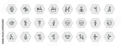 outline icons set - people concept. vector icons included hugging, working at the office, postman working, bestman and more.