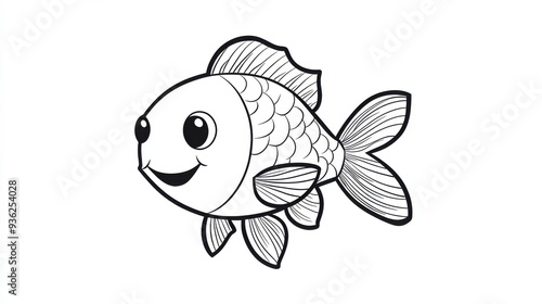 Outline illustration of a black and white fish for drawing and coloring on white background