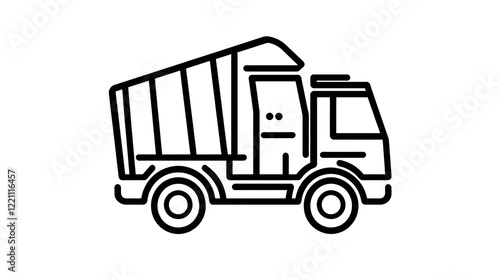 Outline illustration of a dump truck showcasing simple design on a white background