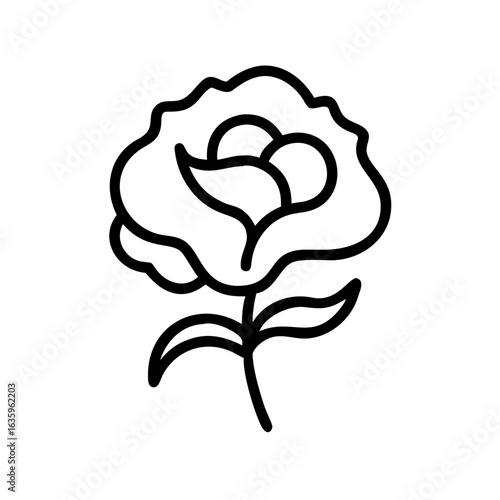Outline illustration of a rose flower with leaves