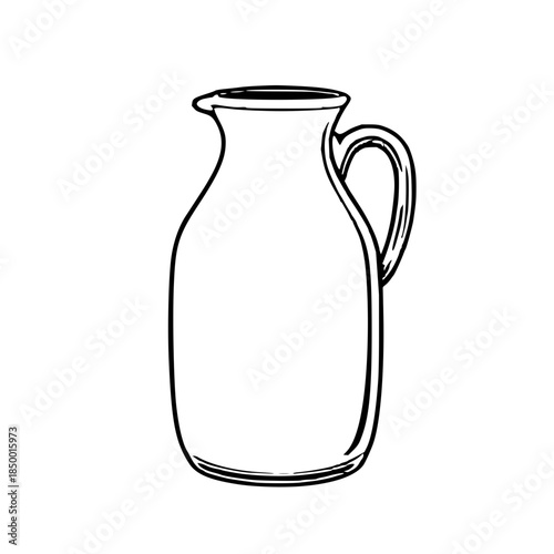 Outline line-art of a ceramic pitcher with handle – black ink sketch