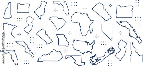 Outline map of the United States of America. 50 States of the USA. US map with state borders. Silhouette of the USA. Vector