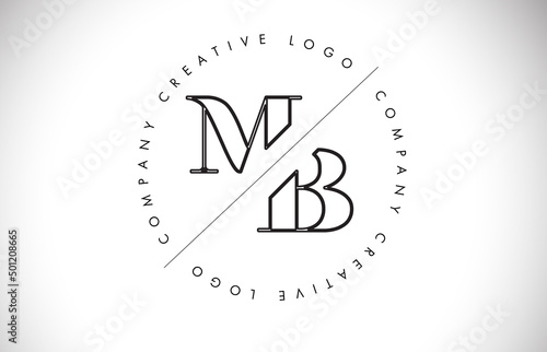 Outline MB m b letter logo with cut and intersected design and round frame.