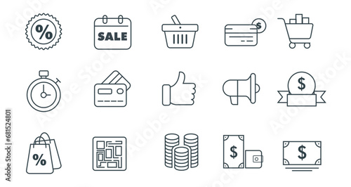 Outline money icons set. Info, Sale and finance icons. For website app. Vector stock illustration. editable stroke