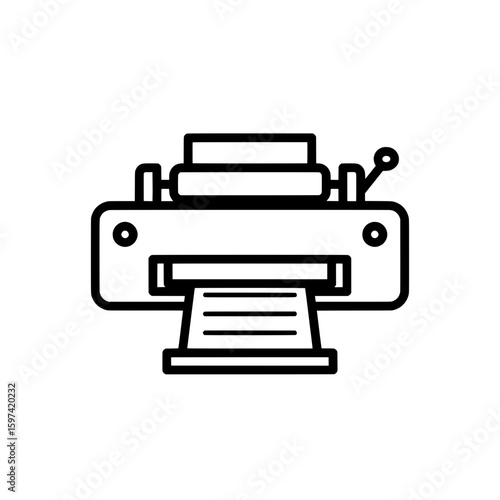 Outline of a vintage printing machine with paper feed and controls