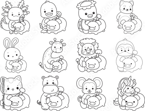 Outline of Cute wild animal vector icon. Lineart of Fluffy pet stickers.