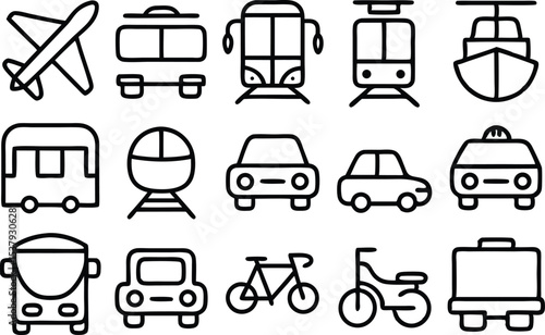 Outline transportation icon grid a single sheet of transportation icons with helvetica and courier fonts