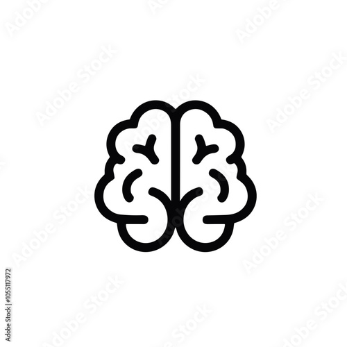Outlined Brain, Minimalist Design, Knowledge Concept, Black and White