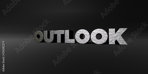 OUTLOOK - hammered metal finish text on black studio - 3D rendered royalty free stock photo. This image can be used for an online website banner ad or a print postcard.