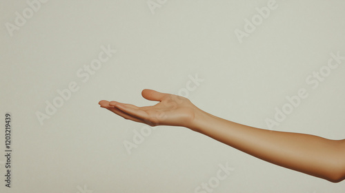 Outstretched Hand: A single hand reaches out, palm up, against a minimalist background, symbolizing openness, welcome, and the potential for connection.