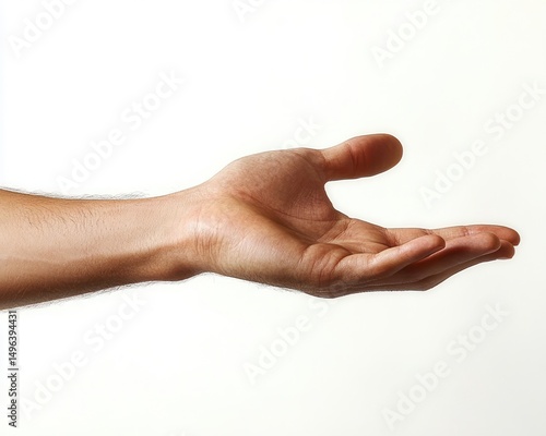 outstretched human hand with palm facing upwards on white background expressing openness or request