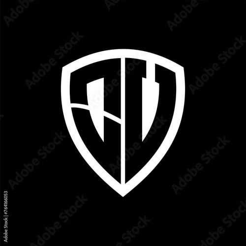OV monogram logo with bold letters shield shape with black and white color design