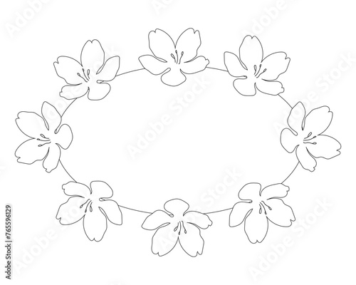 Oval frame black and white frame with flowers .Blank space for text . Sakura flowers