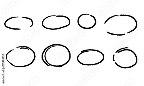 Oval frames. Hand drawn paint brush grunge round doodle frame. Stock vector stamp emblem illustration isolated on white background.