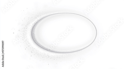 Oval glittering frame with silver particles rotating on white background