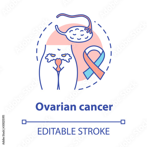 Ovarian cancer concept icon. Oncological disease idea thin line illustration. Women health, reproductive system. Oncology, gynecology. Vector isolated outline drawing. Editable stroke