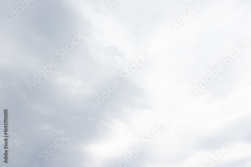Overcast sky with thick gray clouds stretching across the horizon, creating a calm yet moody atmosphere above a distant landscape.