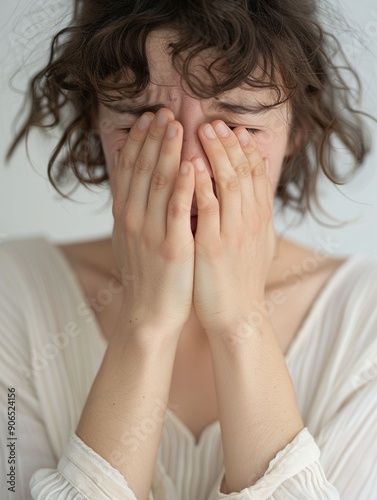 Overcoming Grief - Portrait of a Tearful Woman with Hands on Face Showing Deep Sadness and Emotional Pain in a Magazine Style Layout