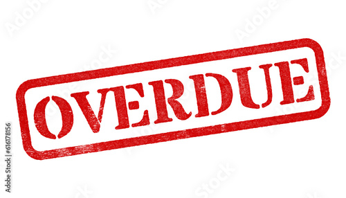 Overdue red rubber stamp isolated on transparent background with distressed texture effect