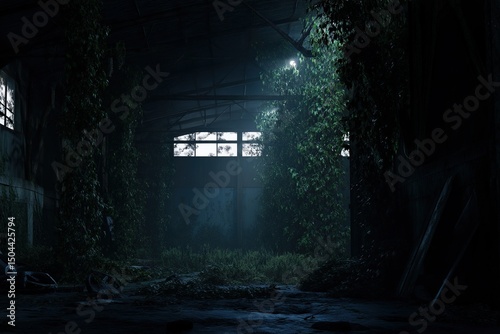 Overgrown structure: Abandoned building with flourishing plant life inside.