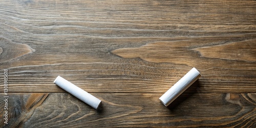 Overhead Flat Lay: Chalk on Rustic Wood, Modern Minimalist Background - Copy Space
