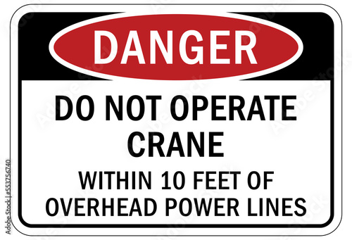 Overhead power lines sign and labels do not operate crane within 10 feet of overhead power line
