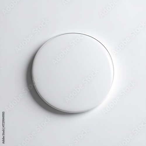 Overhead shot of a round, white object with a thin metallic trim, on white