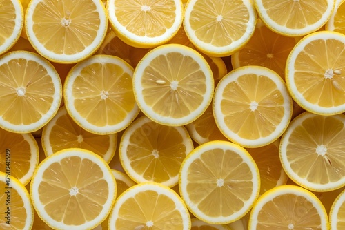 Overhead shot of fresh lemon slices vibrant and juicy perfect for food photography and summer themes