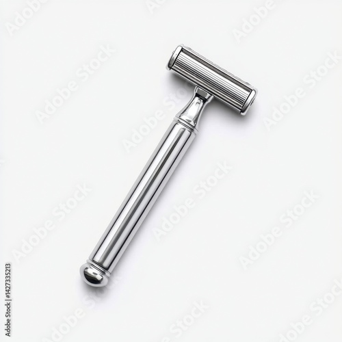 Overhead Studio Shot of Chrome Safety Razor on Clean White Seamless Background