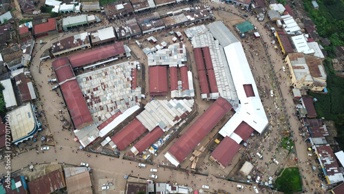 Overhead view of a flooded market area in cameroon after a recent heavy rainfall