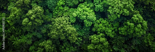 Overhead view of a green forest showcasing a dense canopy with diverse foliage, reflecting natural beauty and the richness of the environment.