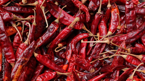Overhead view of a lot of red chili pods put on sunlight to dry
