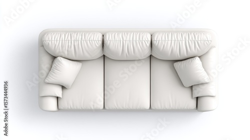 Overhead view of minimalist white leather sofa, featuring soft cushions against pristine backdrop, highlighting contemporary furniture design