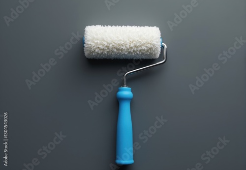 Overhead View of Paint Roller with Blue Handle