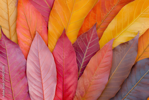 Overlapping autumn leaves texture in vivid shades of orange, red, and yellow, layered in a colorful natural pattern