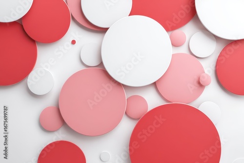 Overlapping red and white circles create a dynamic and vibrant abstract composition on a white background