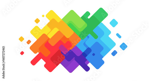 Overlapping translucent squares creating an abstract colorful design in a modern art style