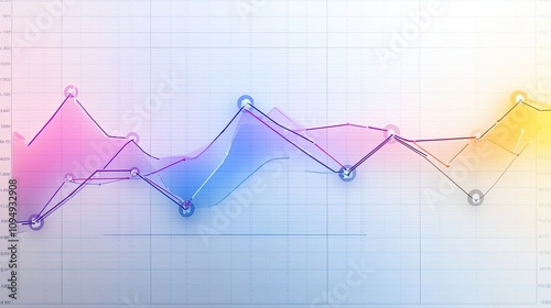 Overlay of line graphs with holographic colors, [business trends visualization], [symbolizing growth in dynamic markets]