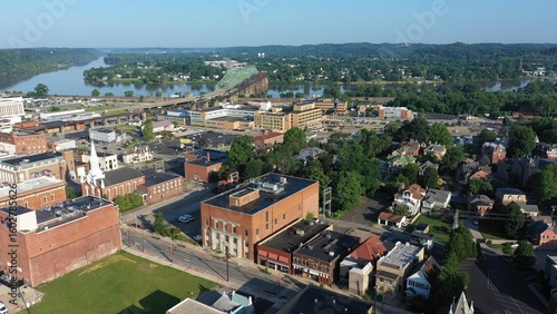 Overlooking Parkersburg, West Virginia, this aerial view showcases the vibrant downtown area with the Ohio River and Little Kanawha River in the background.