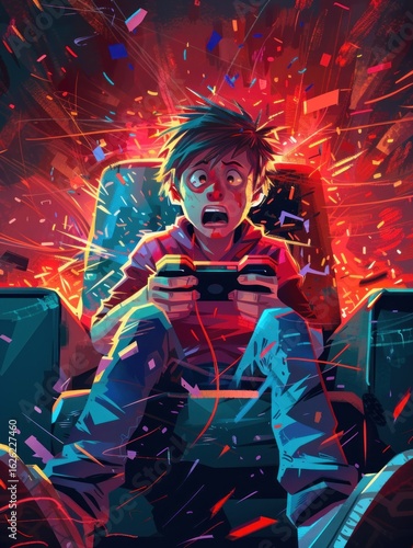 Overwhelmed gamer in a racing-style game