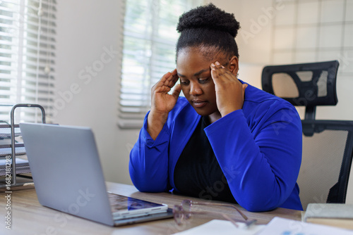 Overworked tired african female worker holding glasses feel eye strain fatigue after computer work multiracial woman suffer from pain in dry irritated eyes bad blurry vision eyesight problem