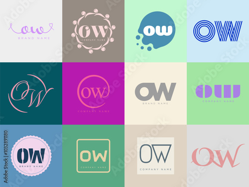 OW logo company template. Letter o and w logotype. Set different classic serif lettering and modern bold text with design elements. Initial font typography.