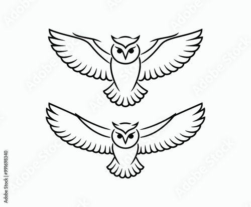 Owl bird silhouette editable EPS vector isolated illustration template on a white background