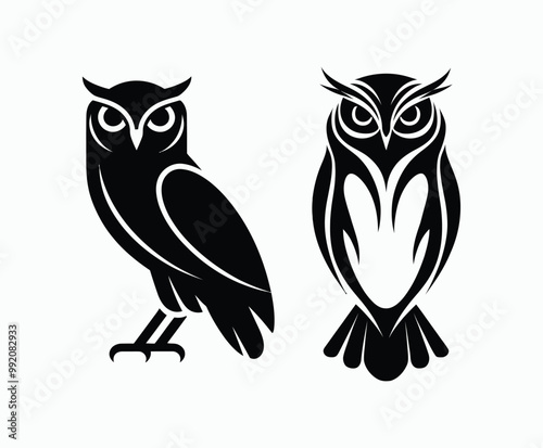 Owl bird silhouette editable EPS vector isolated illustration template on a white background