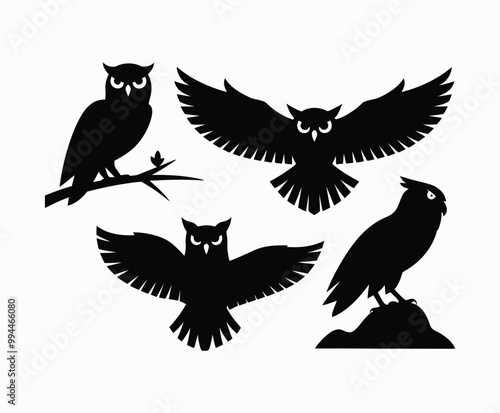 Owl bird silhouette editable EPS vector isolated illustration template on a white background