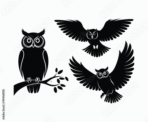 Owl bird silhouette editable EPS vector isolated illustration template on a white background
