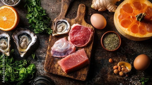 Oysters, meat, organ meats, poultry, fish, eggs, milk, pumpkin seeds, foods high in zinc